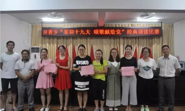 与此同时,9月7日晚,开善乡工会、团委、妇联联合举办了“喜迎十九大 颂歌献给党”经典诵读比赛,17名青年干部的精彩诵读为全乡干部送上了一道丰富的“文化大餐”。